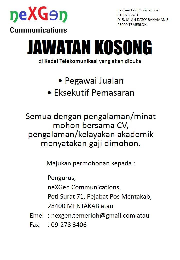 Twitter 上的 Nexgen Communication Jawatan Kosong Pegawai Jualan Eksekutif Pemasaran Kedai Telefon Nexgen Communications Mentakabtv Temerlohnews Http T Co Ssawhn9np8 Twitter